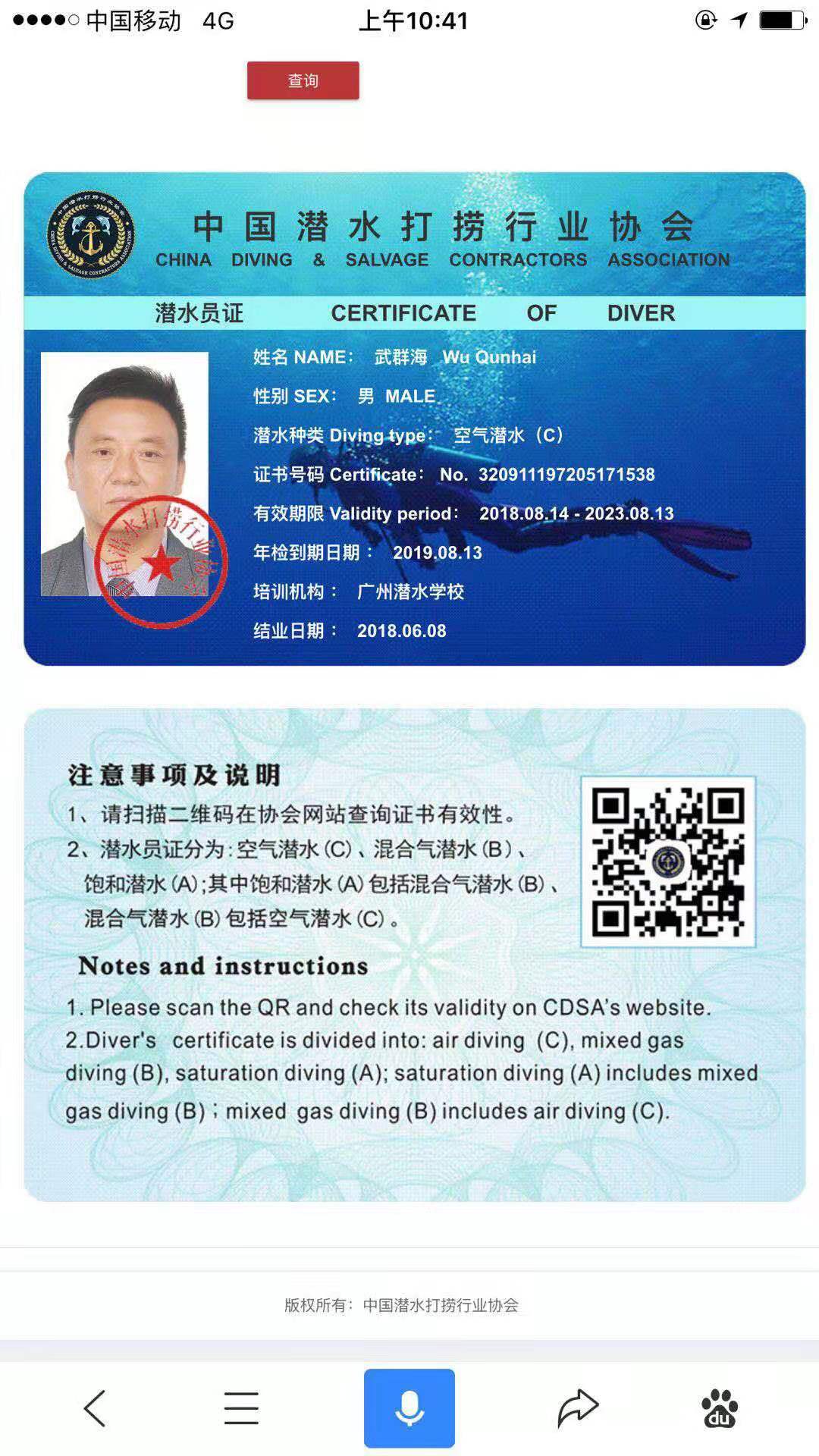 ◆ 船舶與海洋設(shè)施水下目視檢測(cè)、磁粉探傷、超聲波探傷、電位測(cè)量作業(yè)
